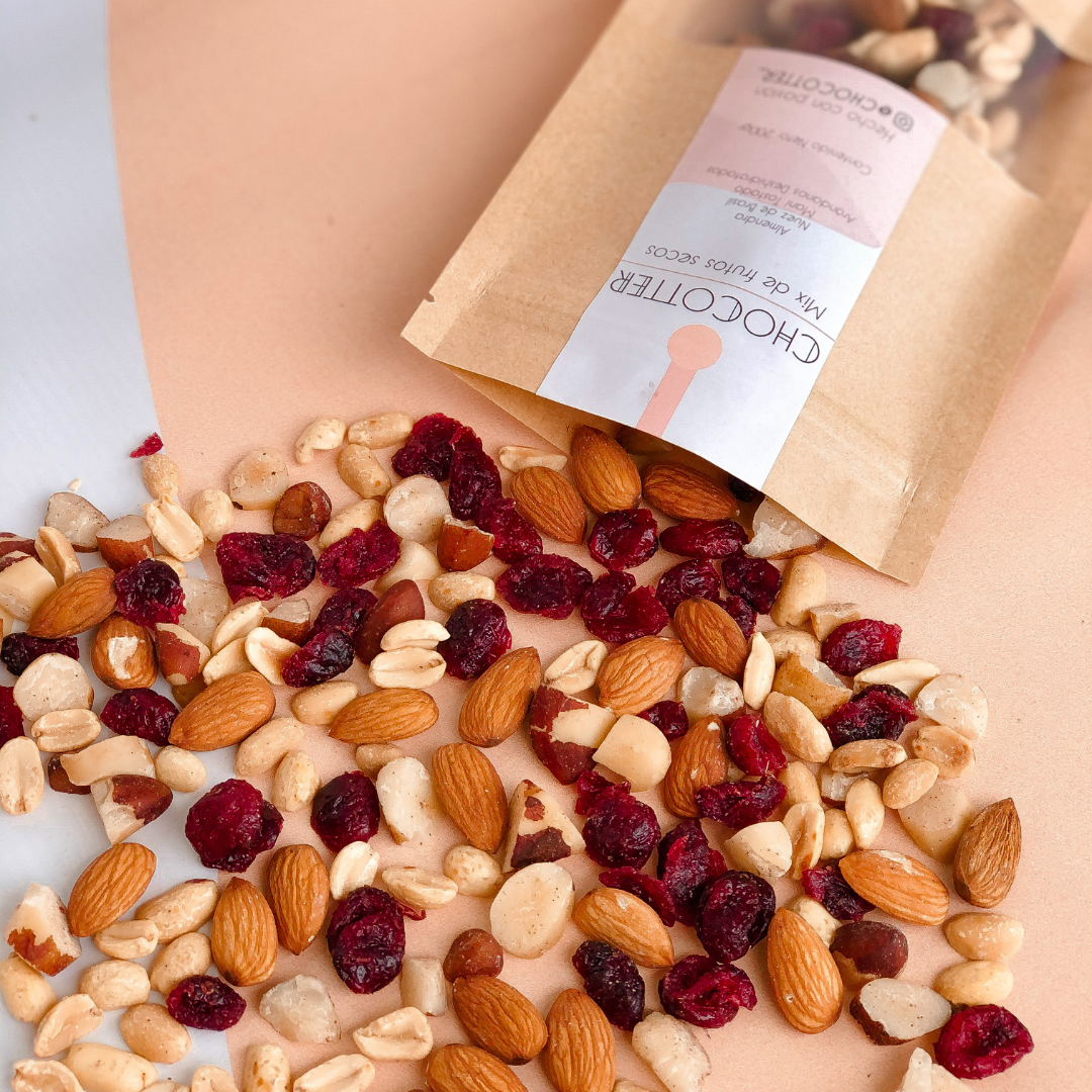🧡 Nuestro mix estrella combina maní, almendras, nuez de Brasil y arándanos deshidratados en partes iguales, creando el equilibrio perfecto entre crocante, suavidad y un toque frutal.